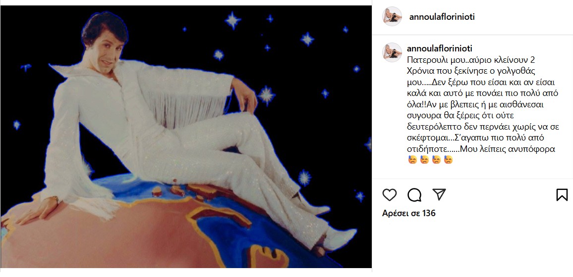 «Πατερούλη μου… αύριο κλείνουν δύο Χρόνια που ξεκίνησε ο Γολγοθάς μου… Δεν ξέρω που είσαι και αν είσαι καλά και αυτό με πονάει πιο πολύ από όλα!! Αν με βλέπεις ή με αισθάνεσαι σίγουρα θα ξέρεις ότι ούτε δευτερόλεπτο δεν περνάει χωρίς να σε σκέφτομαι… Σ’αγαπω πιο πολύ από οτιδήποτε… Μου λείπεις ανυπόφορα», έγραψε η Άννα συγκλονίζοντας τους ακόλουθούς της.