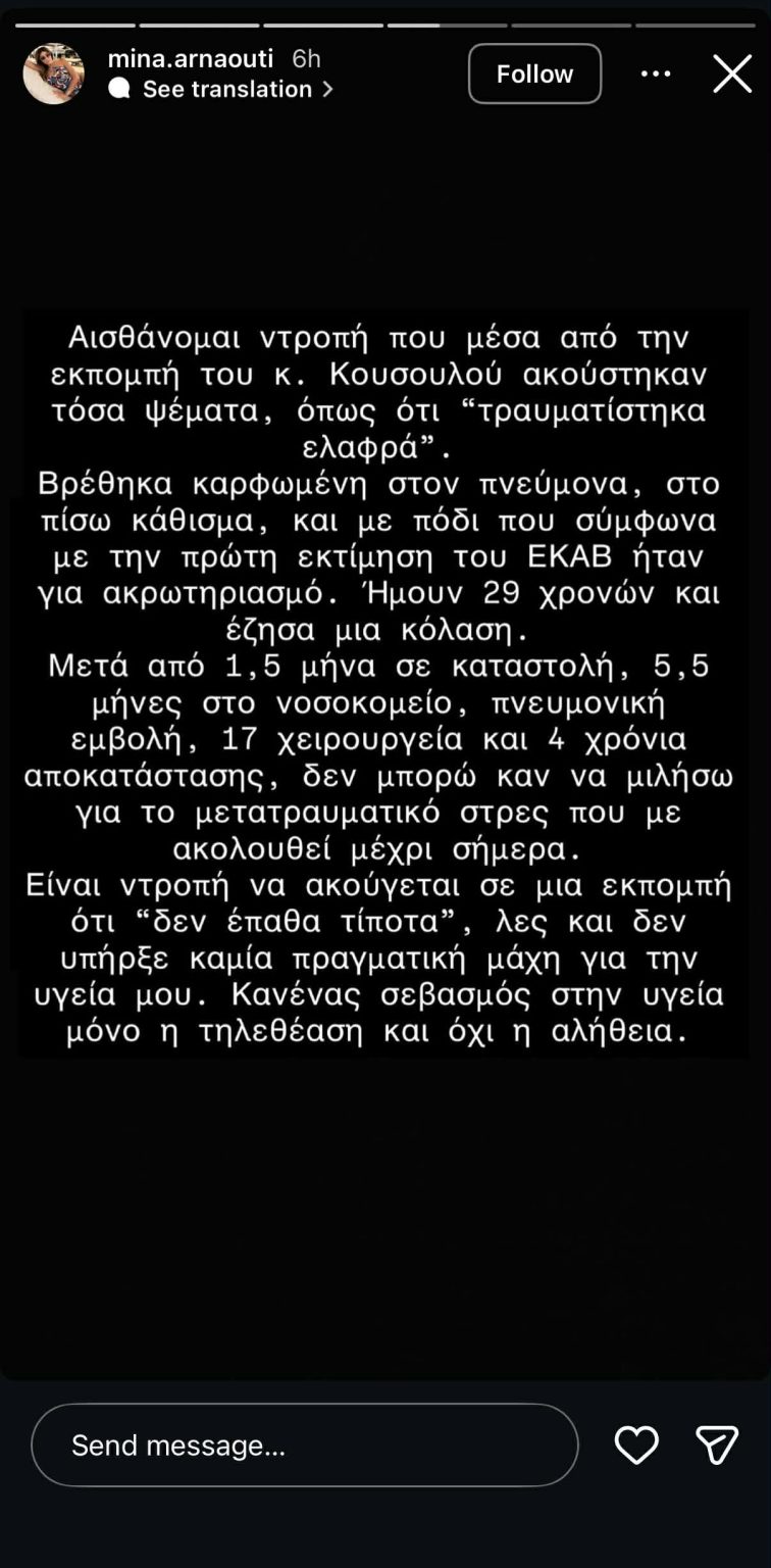 Τις τελευταίες ώρες, η Μίνα Αρναούτη έχει ξεκινήσει ανοιχτή διαδικτυακή αντιπαράθεση με τον δημοσιογράφο Πέτρο Κουσουλό, μέσα από διαδοχικές αναρτήσεις στα social media.