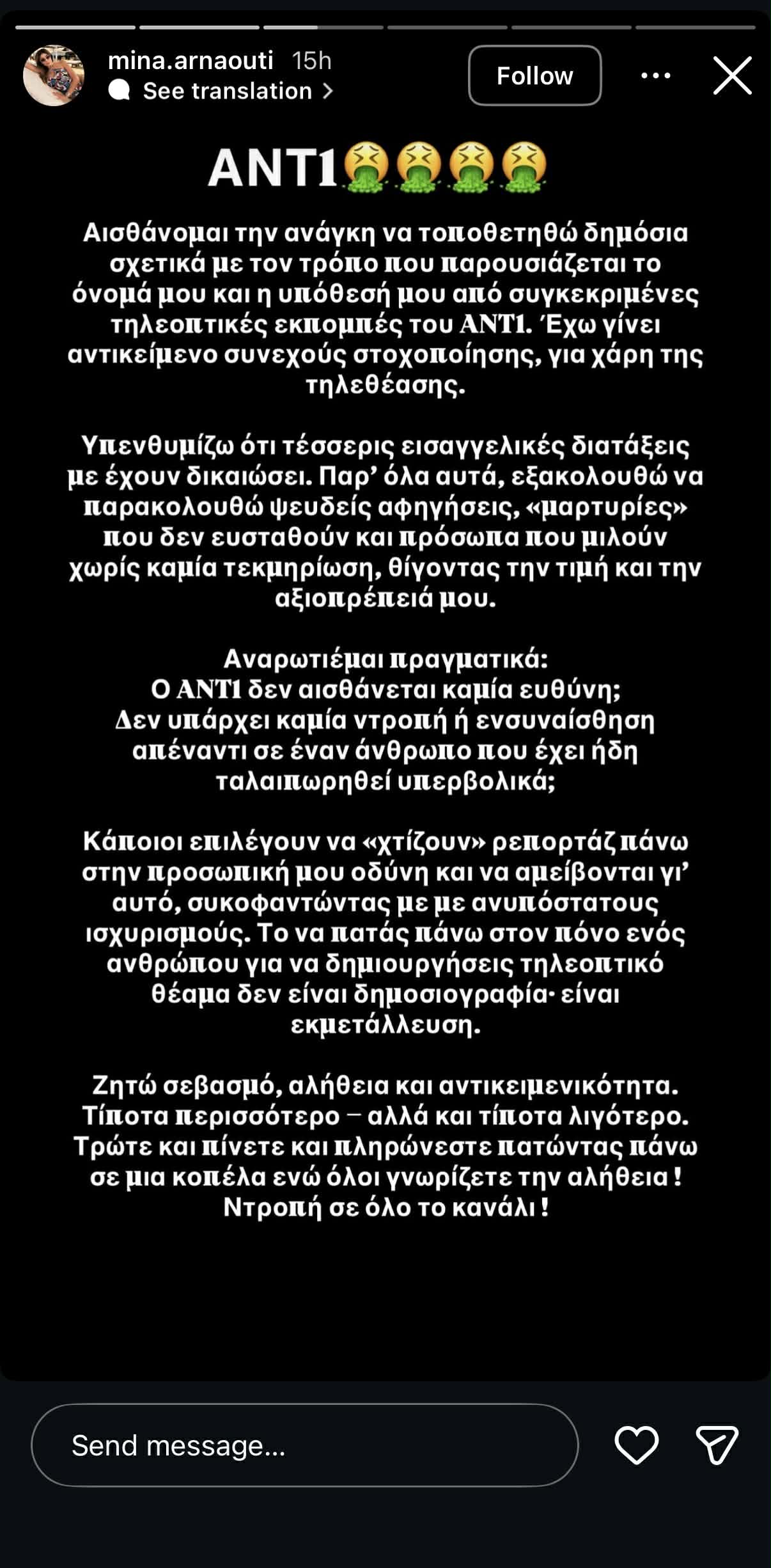 Το περιβάλλον της Αρναούτη αναφέρει πως πλησιάζει η στιγμή που το αρμόδιο δικαστήριο θα εξετάσει τις αγωγές αποζημίωσης που έχει καταθέσει για τις βλάβες που υπέστη. Όπως σημειώνουν, αυτή η χρονική συγκυρία είναι που εξηγεί και την αυξημένη δημοσιότητα των τελευταίων ημερών γύρω από την υπόθεση.