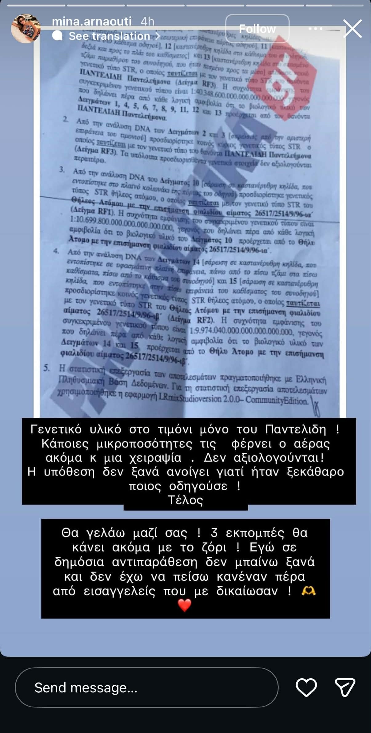 Άτομα του στενού περιβάλλοντος της Αρναούτη επιμένουν πως οι επαναλαμβανόμενες «νέες μαρτυρίες» που εμφανίζονται κατά καιρούς, δεν αλλάζουν σε τίποτα τη νομική της θέση, η οποία, όπως τονίζουν, παραμένει σταθερή και αδιαμφισβήτητη.