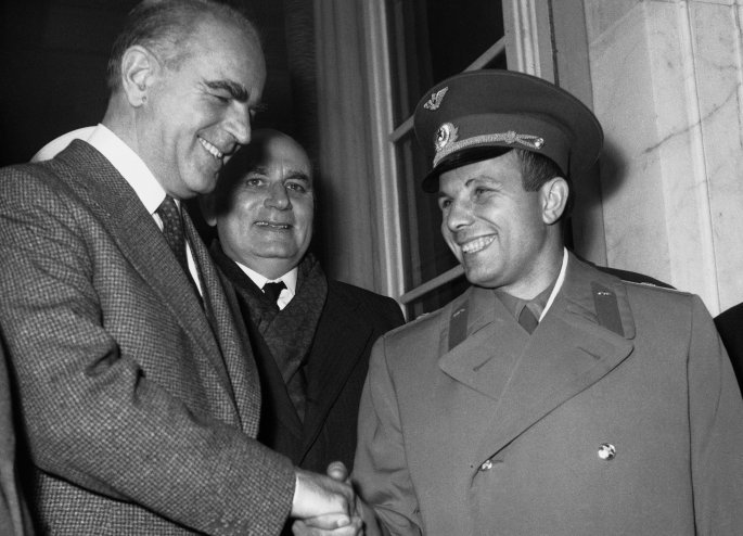 Να πούμε ότι ο Γιούρι Γκαγκάριν είχε επισκεφτεί το 1962 την Αθήνα, όπου του είχε επιφυλαχθεί από το πλήθος ενθουσιώδης υποδοχή. Το σύνθημα «Γκαγκάριν-ειρήνη» δημιούργησε ένταση και δεν έλειψαν οι τραυματισμοί αριστερών διαδηλωτών και αστυνομικών!
