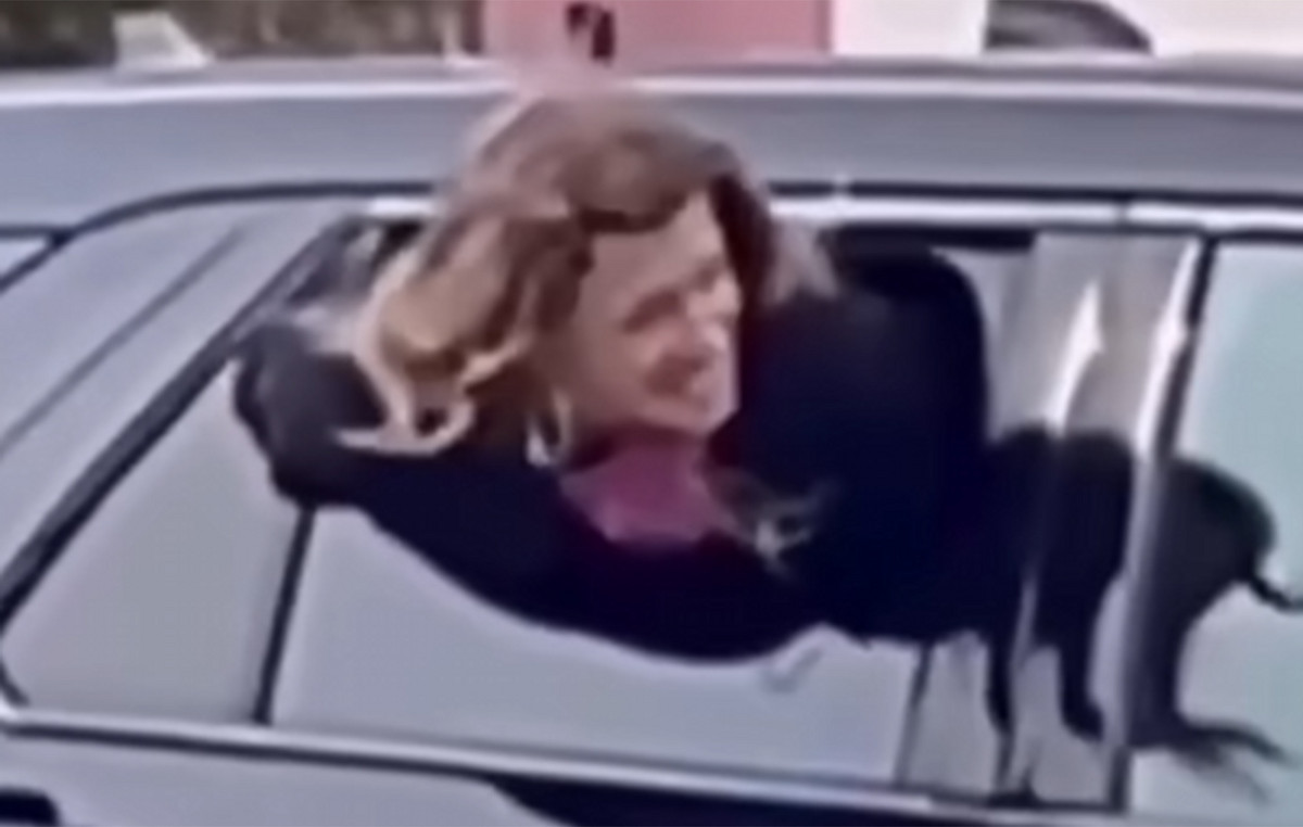 Στο βίντεο που μεταδόθηκε ζωντανά και έγινε viral, η ξανθιά γυναίκα, ντυμένη στα μαύρα, φαίνεται να κοιτάζει προσεκτικά έξω από το μισάνοιχτο παράθυρο, σαν να ελέγχει αν υπάρχει κάποιος κοντά. Στη συνέχεια, με τα χέρια δεμένα πίσω από την πλάτη, βγαίνει πρώτα με το κεφάλι, καταφέρνει να περάσει το σώμα της, κατεβάζει το πόδι της και πηδά στον δρόμο.