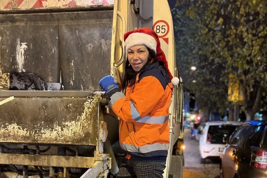 Όπως πολλά επαγγέλματα, έτσι και αυτό της αποκομιδής δεν σταματά ούτε σε αργίες. Πολλές φορές, η Σέβη έχει βρεθεί να δουλεύει Χριστούγεννα ή Πρωτοχρονιά.