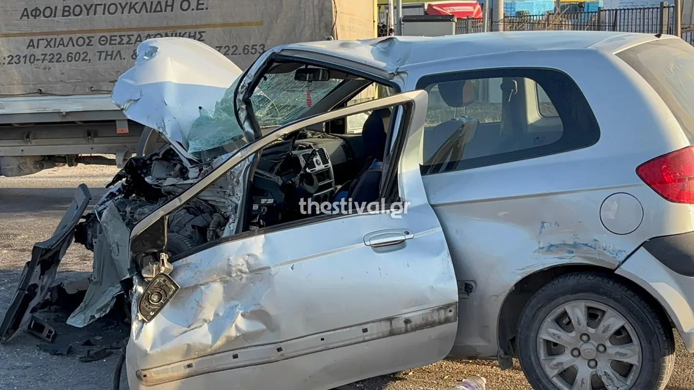 Άμορφη μάζα το αυτοκίνητο — η σύγκρουση με το φορτηγό στη Θεσσαλονίκη ήταν σφοδρότατη.