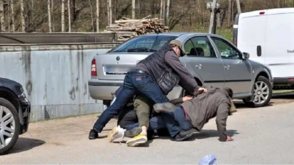 Όσοι βρέθηκαν τυχαία στο σημείο κάνουν λόγο για εικόνες που έμοιαζαν με καυγά μέσα σε ρινγκ, με τον απατημένο σύζυγο να έχει τον απόλυτο έλεγχο και να «βγάζει νοκ άουτ» τον εραστή.
