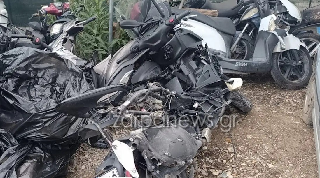 Το μηχανάκι του καταστράφηκε σχεδόν ολοσχερώς, έχοντας υποστεί εκτεταμένες υλικές ζημιές από την πρόσκρουση.