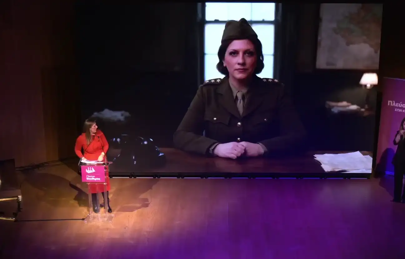 Με τη συνδρομή της τεχνητής νοημοσύνης, το κοινό της εκδήλωσης είδε την Ζωή Κωνσταντοπούλου να εμφανίζεται ως πυροσβέστρια, παιδί, μητέρα, αγρότισσα, γιατρός, δικαστής, οικονομολόγος και ακόμη και ως ελασματουργός.