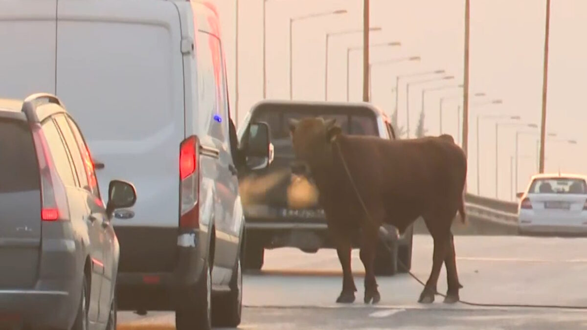 Σύμφωνα με όσα μετέδωσε η ΕΡΤ, ο ταύρος που καταγράφηκε σε βίντεο να περπατά ανάμεσα στα αυτοκίνητα παρέμεινε στο σημείο για περίπου 45 λεπτά, προκαλώντας εύλογη ανησυχία.