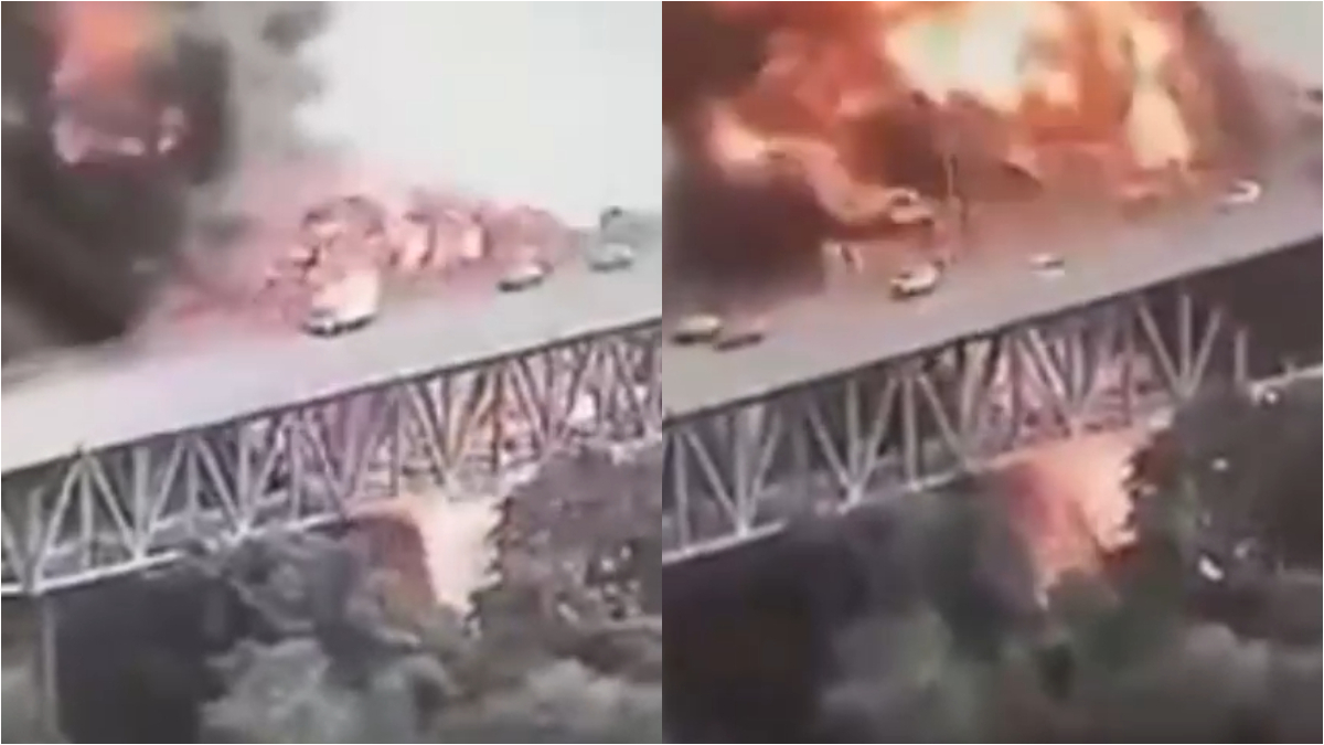 Η έκρηξη καταγράφηκε σε βίντεο, στο οποίο διακρίνονται τεράστιες φλόγες να υψώνονται πάνω από τον δρόμο, ενώ οδηγοί που βρίσκονταν στο σημείο προσπαθούν πανικόβλητοι να απομακρυνθούν για να σωθούν.