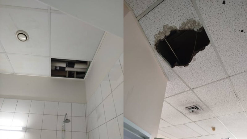 Όπως επισημαίνουν, δεν πρόκειται για μεμονωμένο γεγονός, καθώς το τελευταίο διάστημα έχουν καταγραφεί πτώσεις τμημάτων οροφής σε έξι διαφορετικούς χώρους του ιδρύματος, χωρίς να έχει δοθεί οριστική λύση.