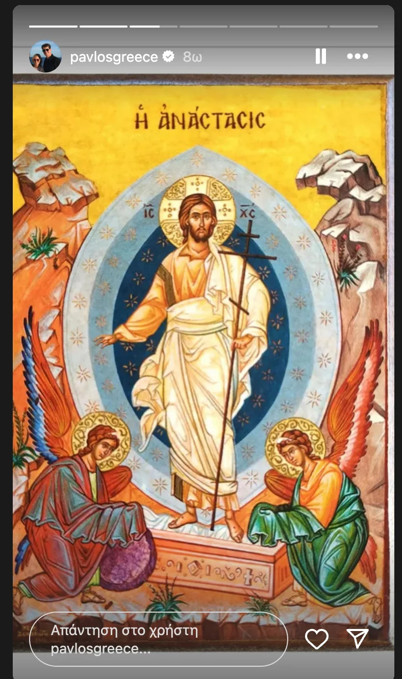 Ο Παύλος με την οικογένειά του παρακολούθησε τη λειτουργία της Ανάστασης στην ελληνική Ορθόδοξη Εκκλησία της Κοιμήσεως της Θεοτόκου, που βρίσκεται στα Χάμπτονς της Νέας Υόρκης. Ανήμερα Πάσχα, στις 20 Απριλίου, έκανε μία ανάρτηση στο Instagram για να ευχηθεί δημόσια, συνοδεύοντάς την με μία φωτογραφία στην οποία ποζάρει με τους γιους του, φωτισμένοι από το φως της Ανάστασης.