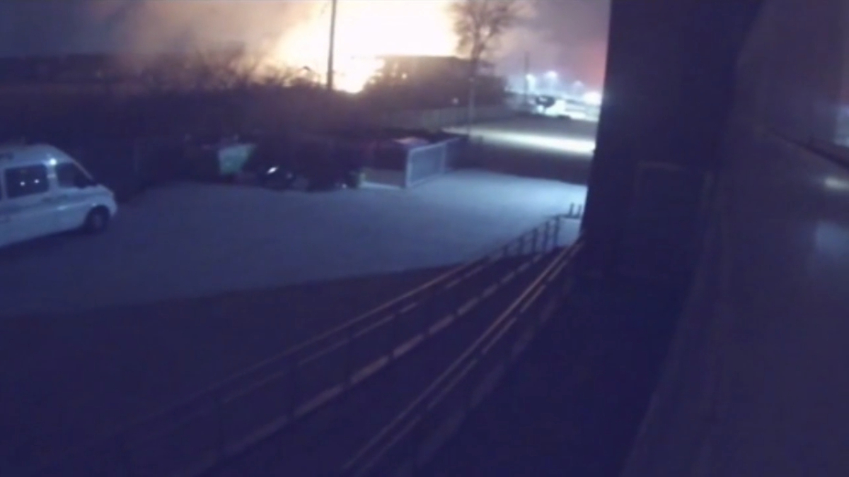 Το πρώτο βίντεο, που έρχεται στο φως της δημοσιότητας, προέρχεται από κάμερα ασφαλείας επιχείρησης που βρίσκεται περίπου 200 μέτρα από τις εγκαταστάσεις του εργοστασίου. Η ώρα ήταν 3:54 τα ξημερώματα, όταν μια εκτυφλωτική λάμψη κάλυψε ολόκληρο το πλάνο, την ίδια στιγμή που η παλιά πτέρυγα του εργοστασίου κατέρρεε λόγω της ισχυρής έκρηξης.