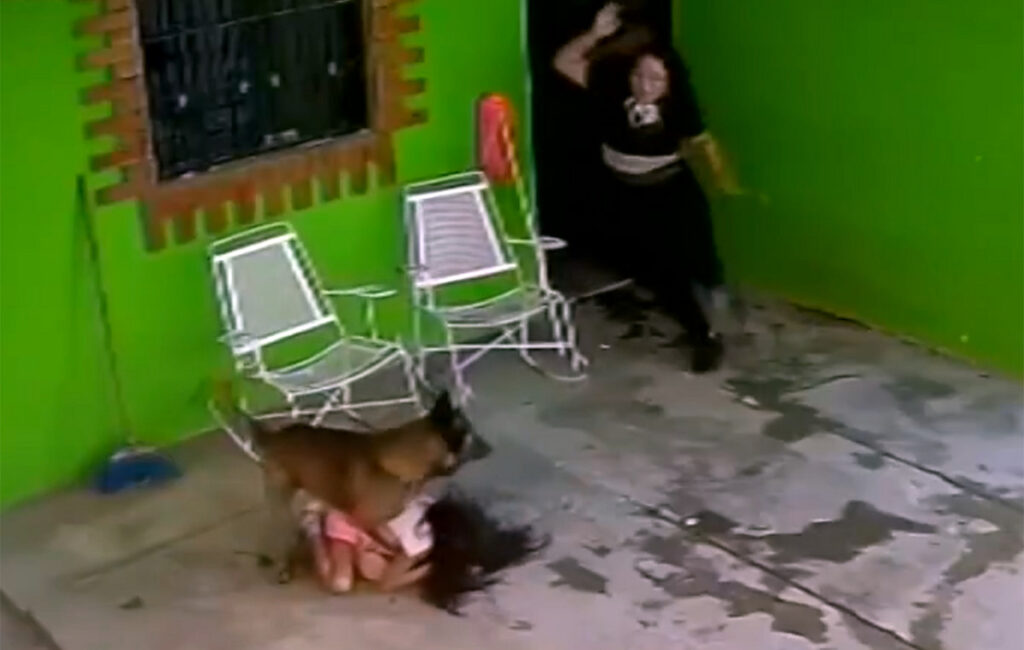 Όπως φαίνεται στο βίντεο από κάμερα ασφαλείας, η 7χρονη διασκέδαζε παίζοντας με το ζώο, όταν ξαφνικά ο σκύλος την άρπαξε από το κεφάλι και άρχισε να την τινάζει δεξιά και αριστερά για αρκετά δευτερόλεπτα.