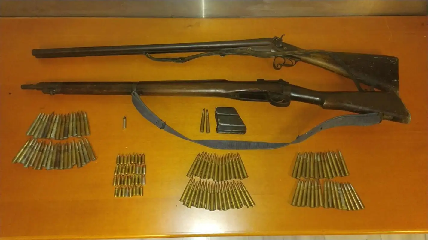 Κατά τις έρευνες εντοπίστηκαν: ένα πολεμικό τυφέκιο με γεμιστήρα, ένα δίκαννο, δύο καραμπίνες (η μία χωρίς σειριακό αριθμό), 145 φυσίγγια και 9 μαχαίρια, τα οποία έχουν σταλεί για εργαστηριακή ανάλυση.