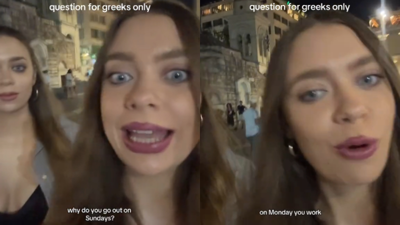 Μια Λιθουανή που ζει στην Ελλάδα ανέβασε ένα βίντεο στο TikTok, εκφράζοντας την έκπληξή της για το πόσο γεμάτο είναι το κέντρο της Αθήνας το βράδυ της Κυριακής.