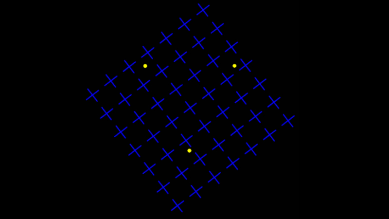 Καθώς εστιάζει κανείς στην πράσινη κουκκίδα που βρίσκεται στο κέντρο και ενώ το πλέγμα περιστρέφεται οι τρεις κίτρινες κουκκίδες που βρίσκονται περιμετρικά της κεντρικής μετά από 10 δεύτερα εξαφανίζονται. Αν όμως απομακρύνεις το βλέμμα σου από το κεντρικό σημείο τότε και οι τρεις τελείες εμφανίζονται και πάλι στη θέση τους.
