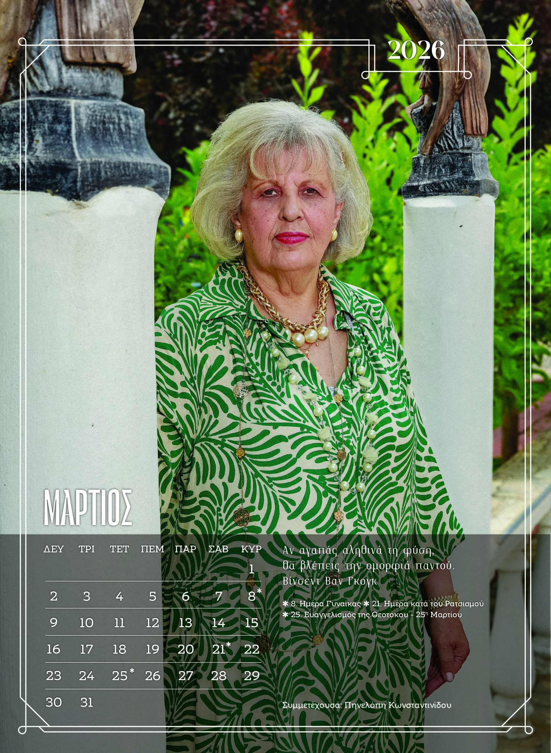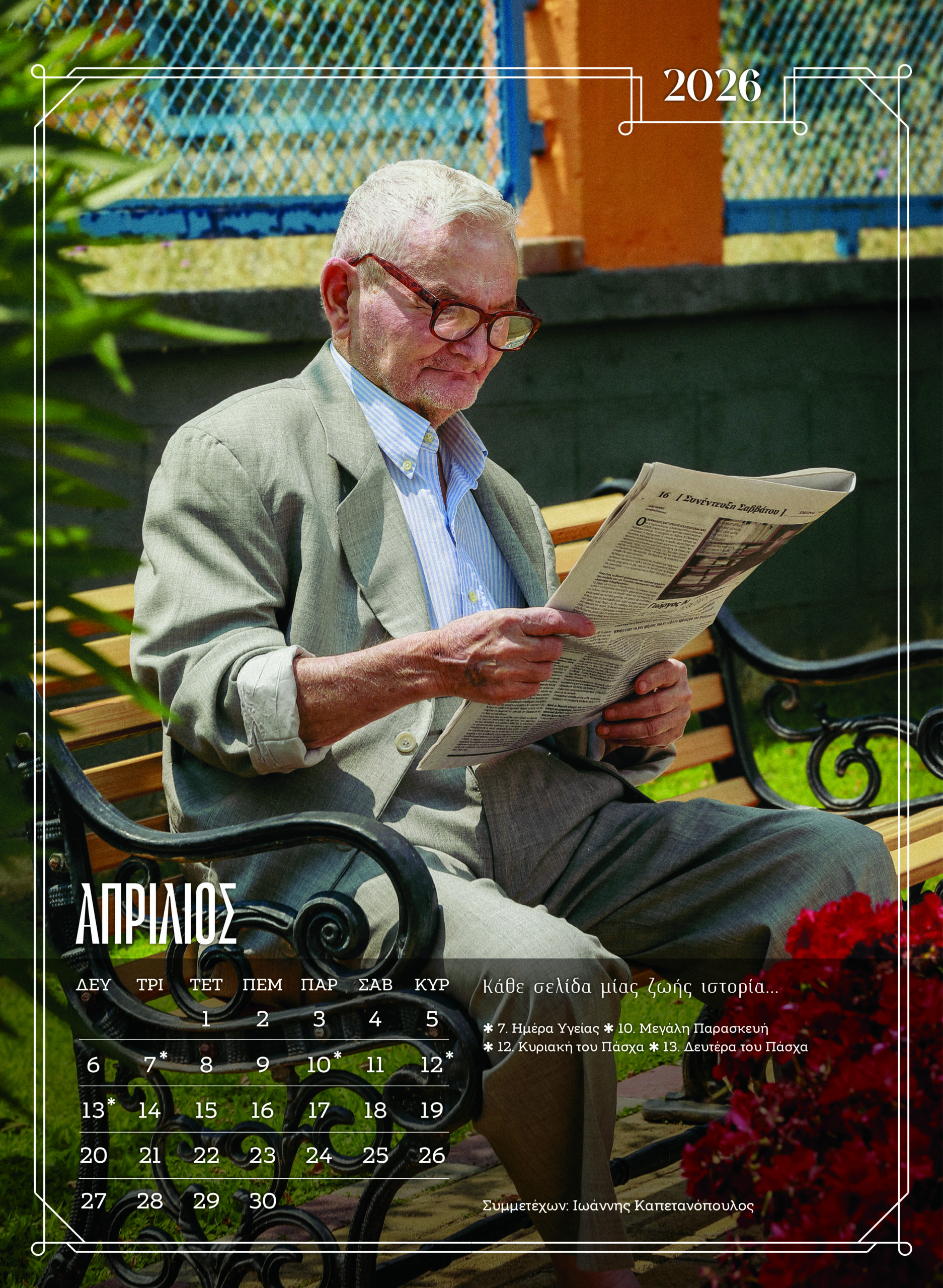 Η Πηνελόπη Κωνσταντινίδου εμφανίζεται τον Μάρτιο με τη φράση του Βαν Γκογκ: «Αν αγαπάς αληθινά τη φύση, θα βλέπεις την ομορφιά παντού». Και τον Απρίλιο, ο Ιωάννης Καπετανόπουλος κρατά εφημερίδα στα χέρια και μας ξεναγεί στο δικό του «βιβλίο ζωής».