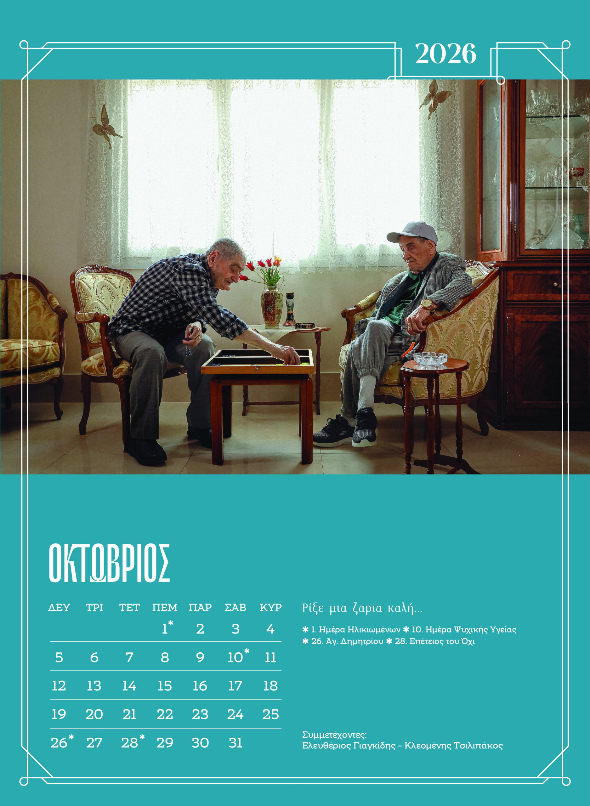 Τον Σεπτέμβριο, η Συμέλα Σαμψώνογλου ανατρέπει κάθε ταμπού: «Δεν λυπάμαι που γερνάω. Είναι ένα προνόμιο που πολλοί δεν το είχαν…». Και τον Οκτώβριο, οι Ελευθέριος Γιαγκίδης και Κλεομένης Τσιλιπάκος χαμογελούν φιλοσοφικά: μια «καλή ζαριά» χρειάζεται πάντα.