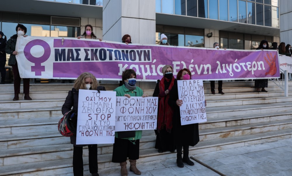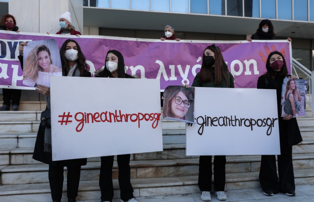 Στην είσοδο του δικαστικού μεγάρου δεκάδες μέλη γυναικείων οργανώσεων είχαν συγκεντρωθεί από το πρωί σε συμπαράσταση των θυμάτων. Σε πανό που είχαν αναρτήσει επαναλαμβάνουν το αίτημα τους να ταυτοποιηθεί ως ειδικό αδίκημα η γυναικοκτονία.